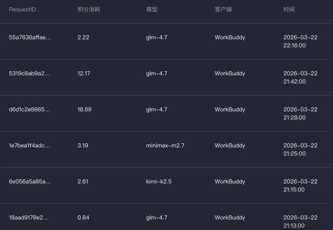 我算了一下,在 WorkBuddy,即使选用最先进的模型,简单任务只消耗个位数 Credits,一些复杂任务消耗也基本控制在十几 Credits,5000Credits 可以够用个把月了,性价相当比不错。