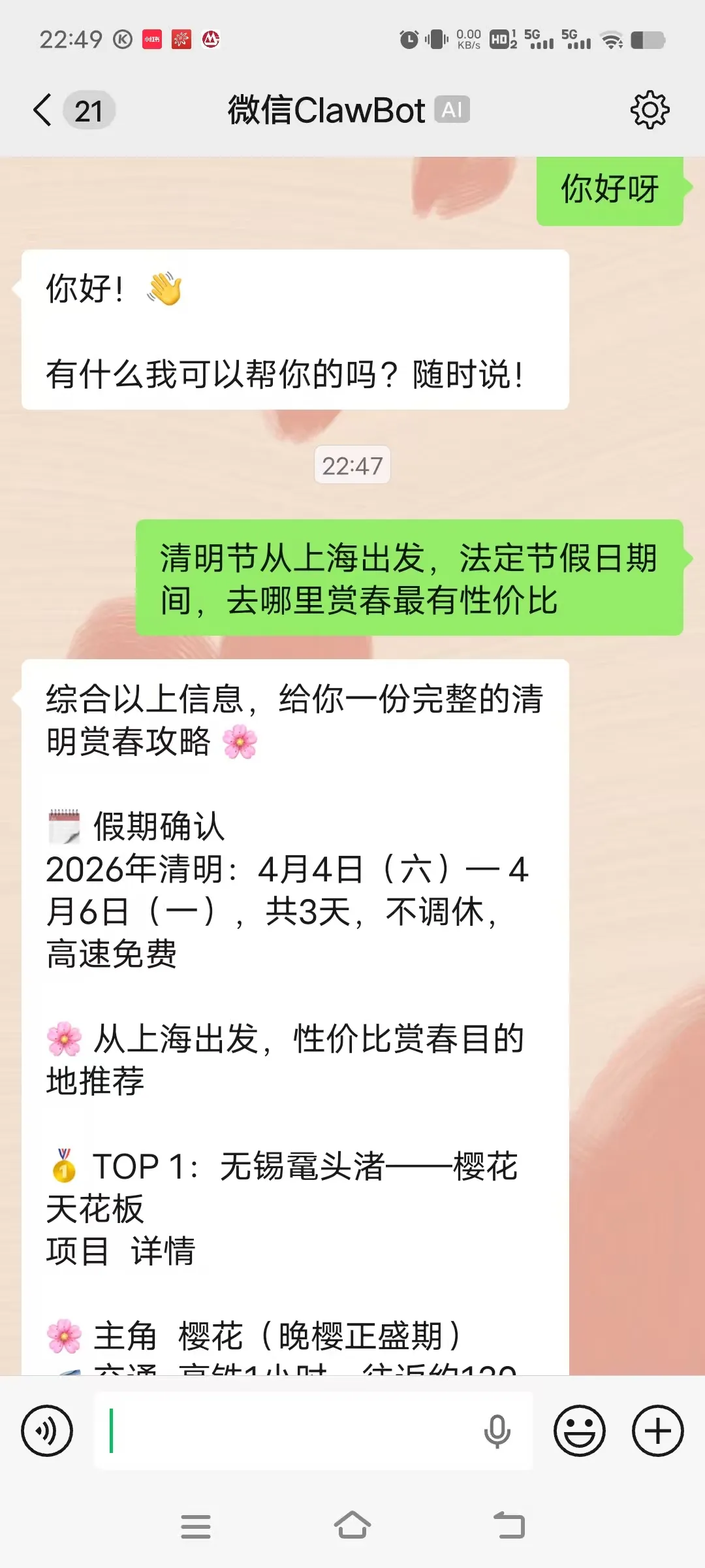 然后,我们就可以在微信里,和虾聊天了。