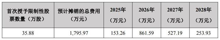 至于限制性股票实施对各期经营业绩的影响,恒工精密表示,假设2025年10月底向激励对象首次授予35.88万股限制性股票,根据企业会计准则要求,本激励计划首次授予限制性股票对各期会计成本的影响如下表所示: