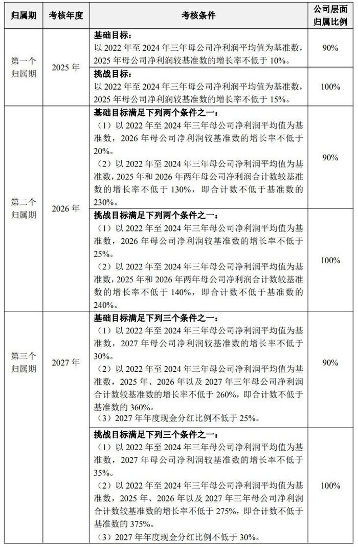 值得注意的是,本激励计划首次授予的限制性股票对应的考核年度为2025-2027年三个会计年度,每个会计年度考核一次,以达到业绩考核目标作为激励对象当年度的归属条件之一。同时,针对在母公司任职的激励对象和在恒工科技任职的激励对象分别设置不同的公司层面考核要求。